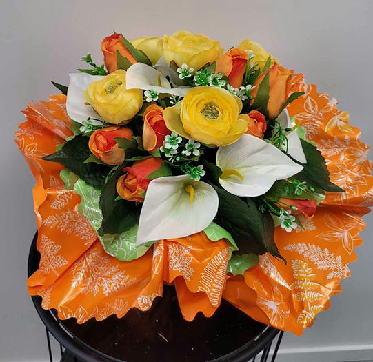Bouquet bulle de Roses jaunes et oranges