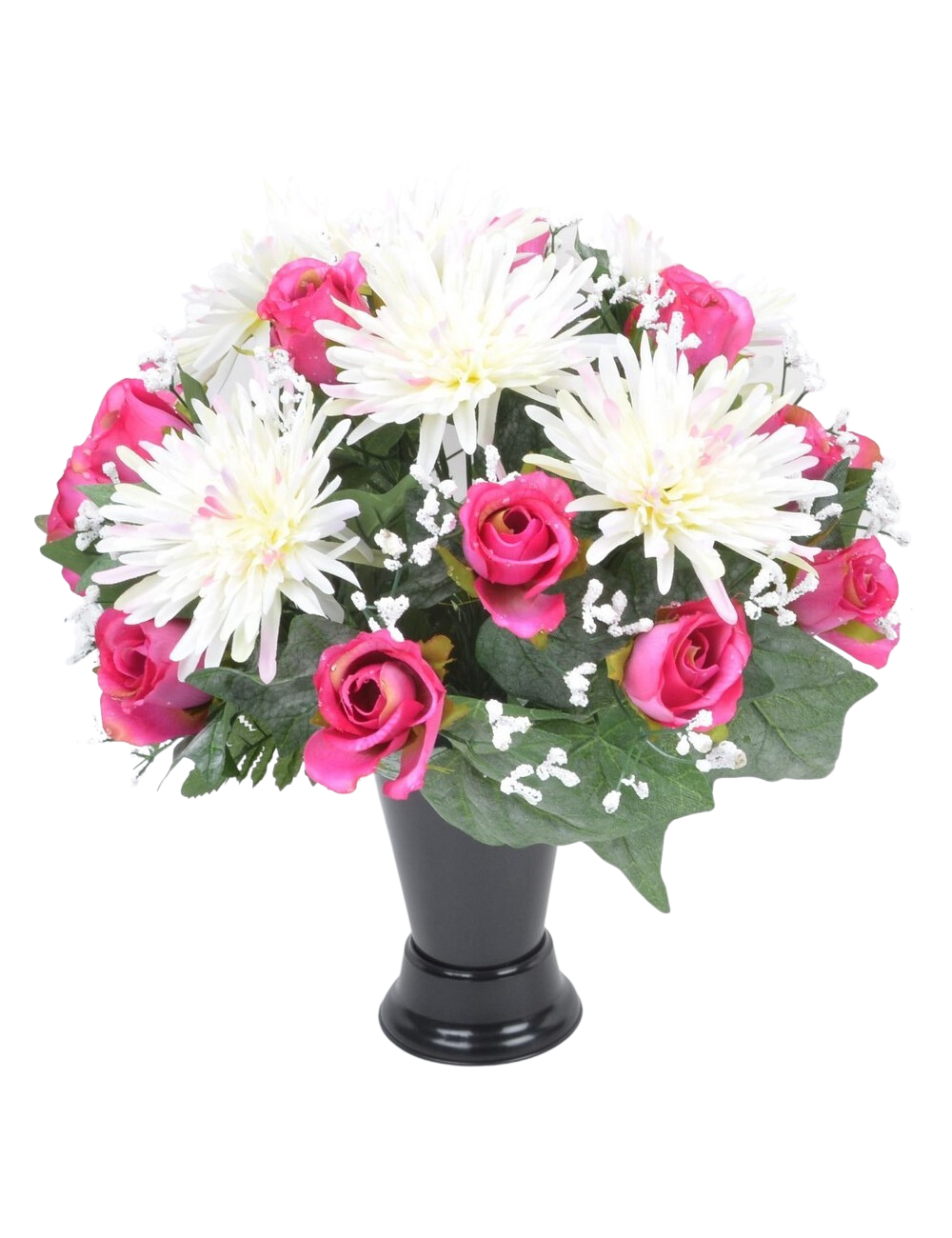 Bouquet de vase de Roses roses et de Chrysanthèmes