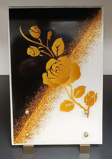 Plaque en composite noir-doré-blanc – Roses