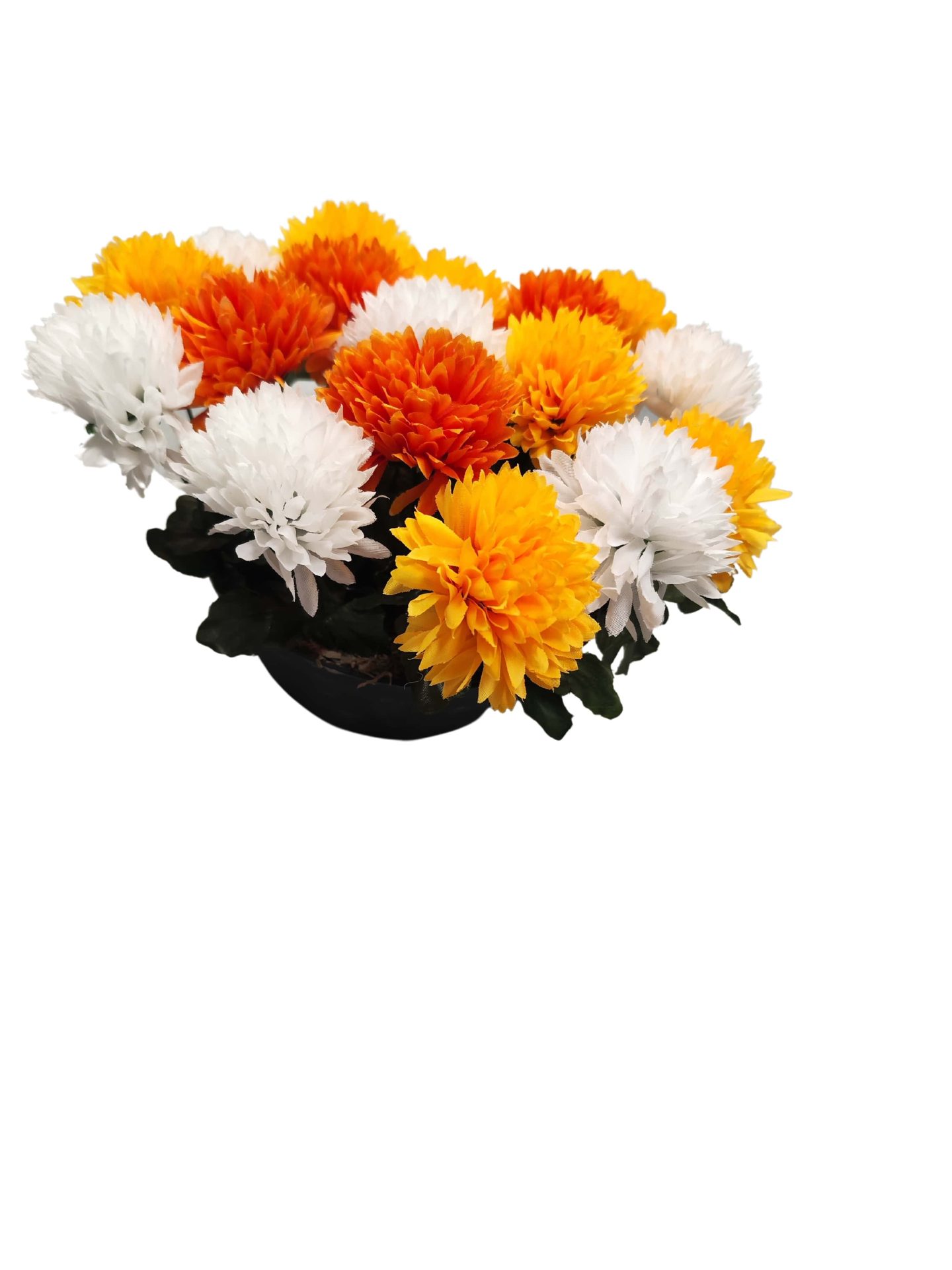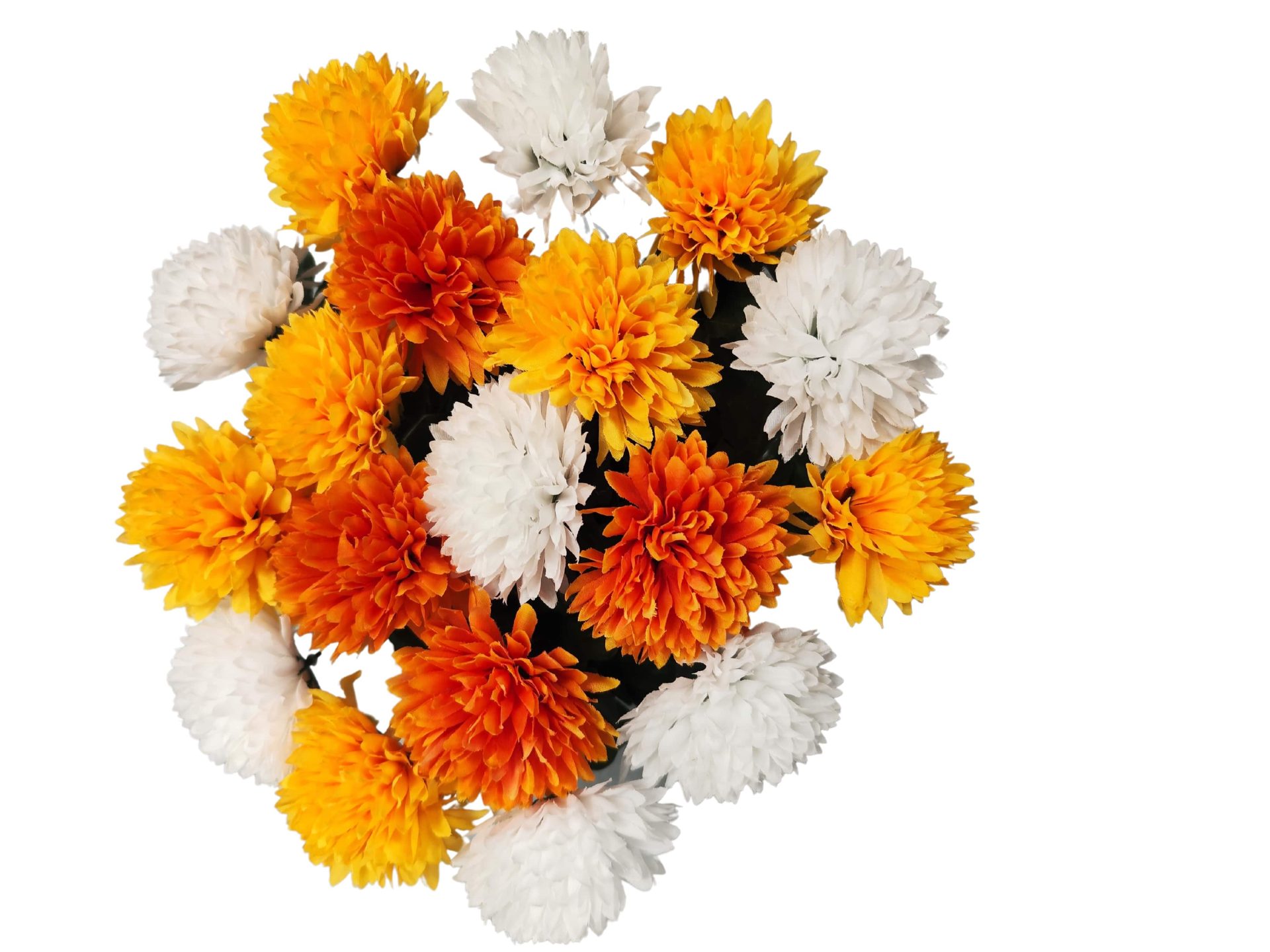 Coupe de Chrysanthèmes jaunes oranges et blancs