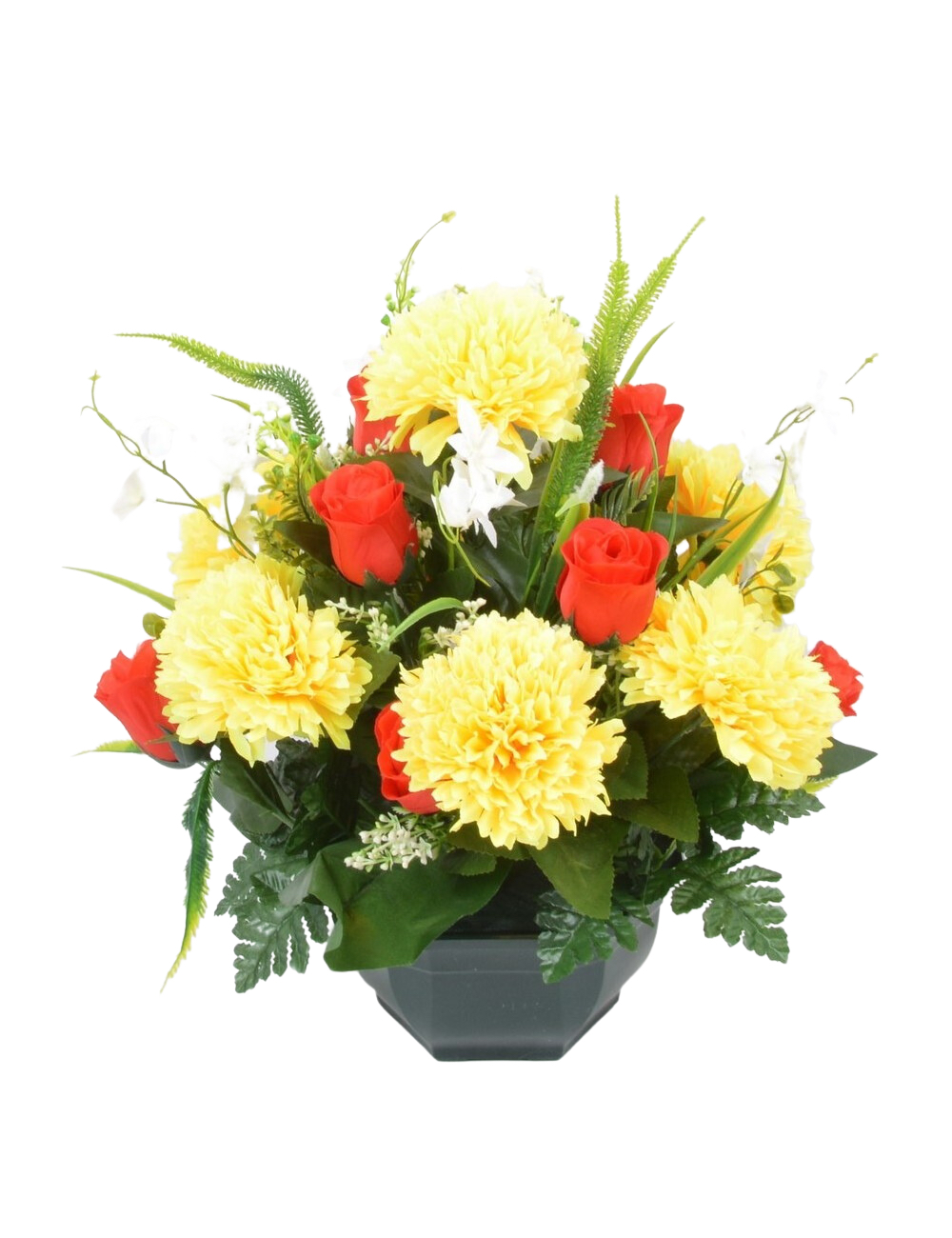 Coupe de Roses rouges et de Chrysanthèmes jaunes