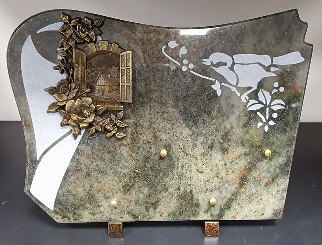 Plaque en granit avec décor blanc – Oiseau et fenêtre Granit vert tropical