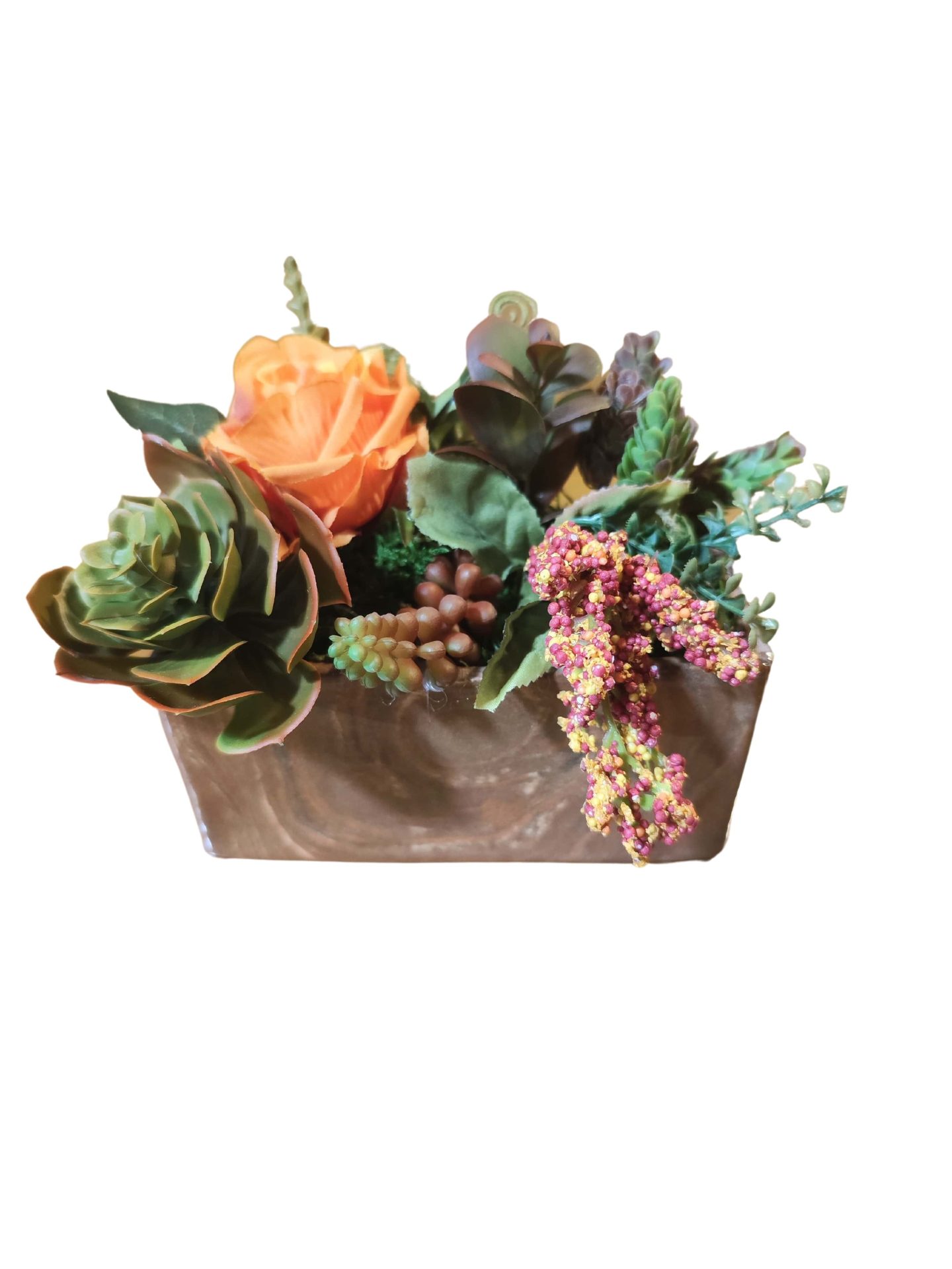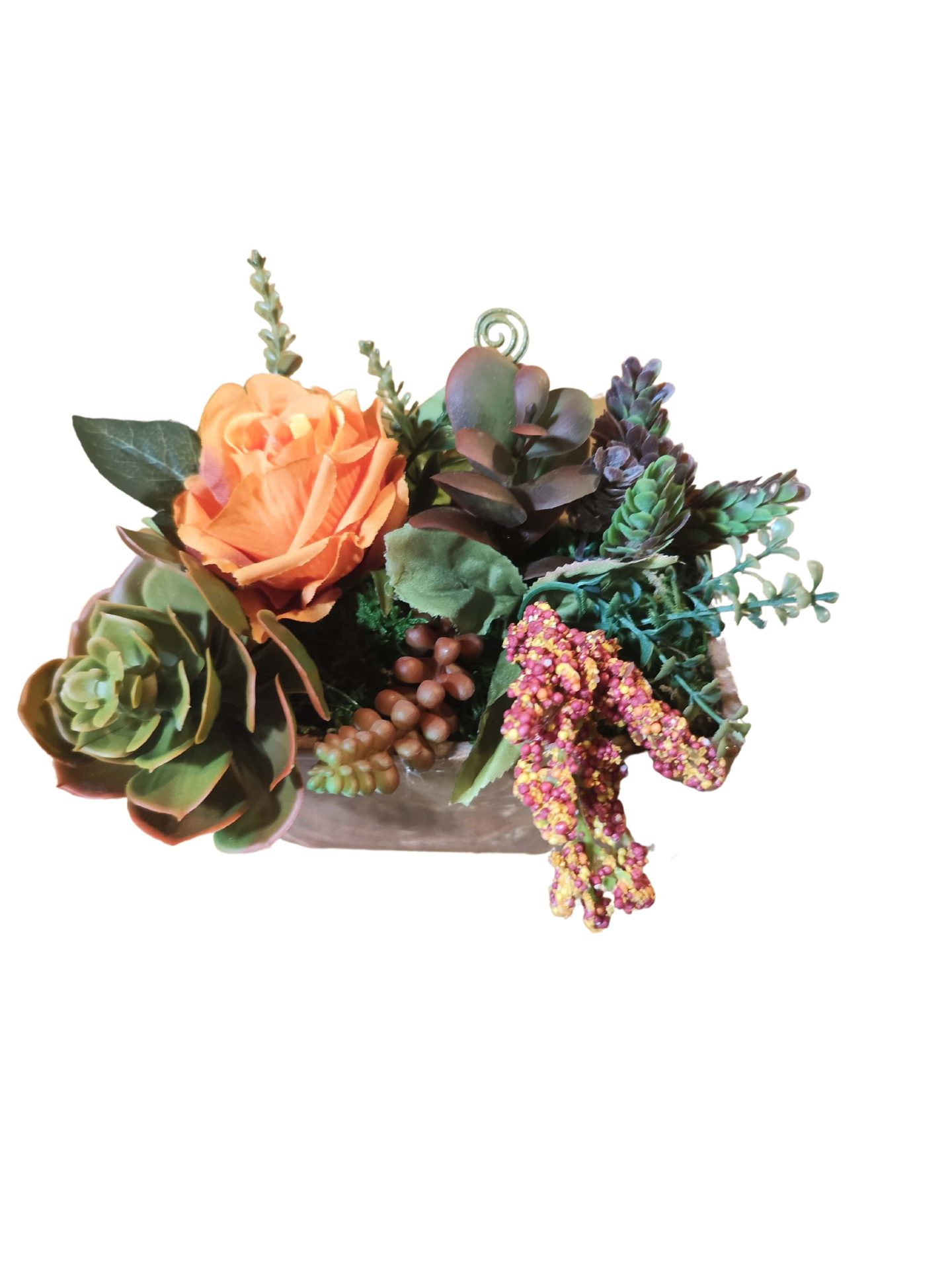Jardinière de plantes grasses avec Rose orange