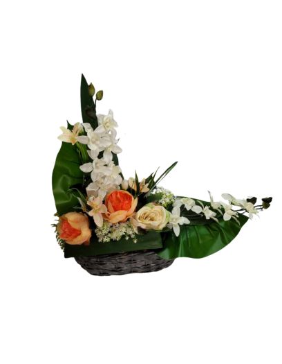 75,00 €0Petit plateau de fleurs rouges et crèmes