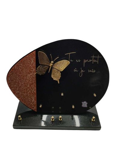 Plaque en granit noir et altuglas ocre – Papillon tu es partout…