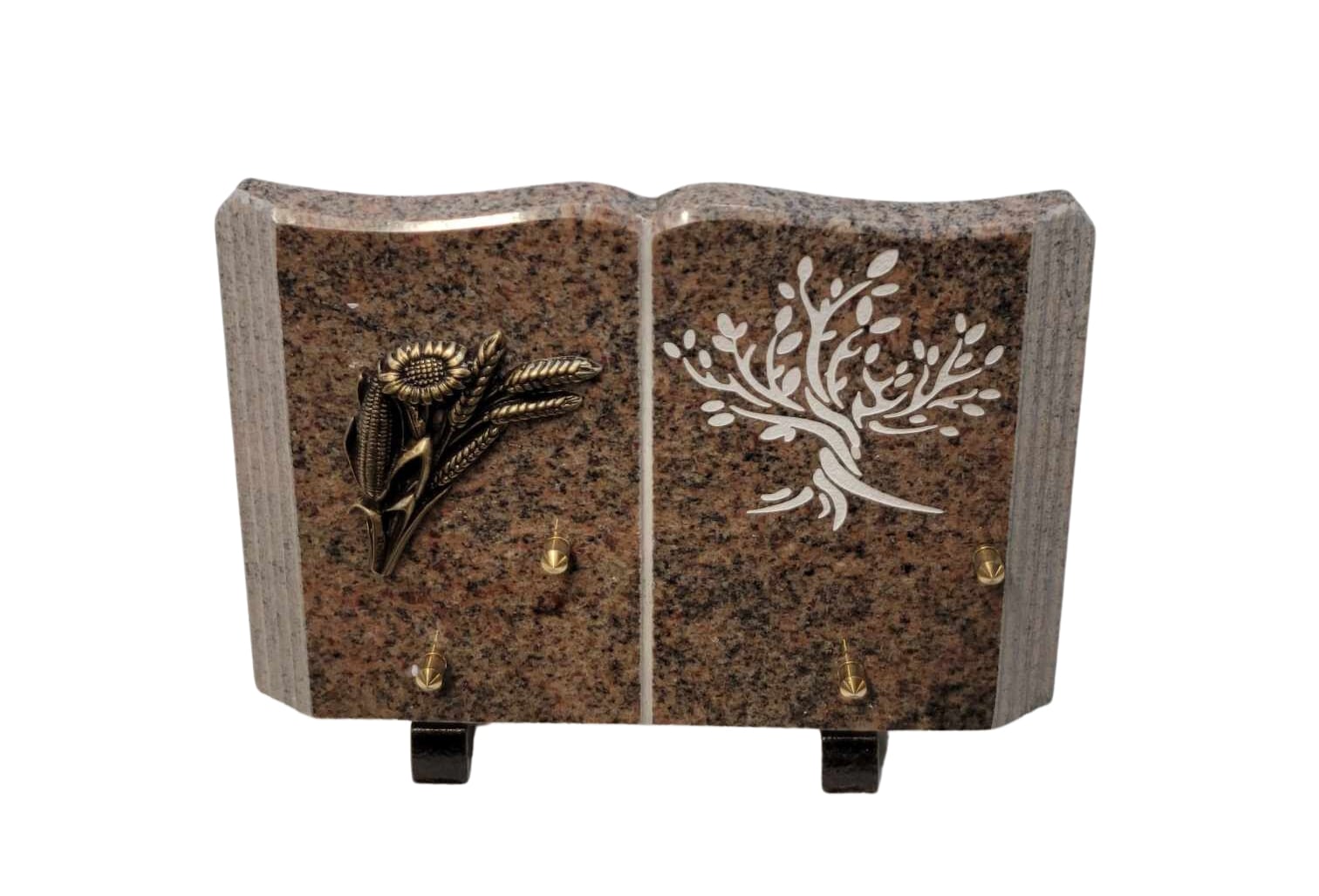Plaque livre en granit rose – bouquet champêtre