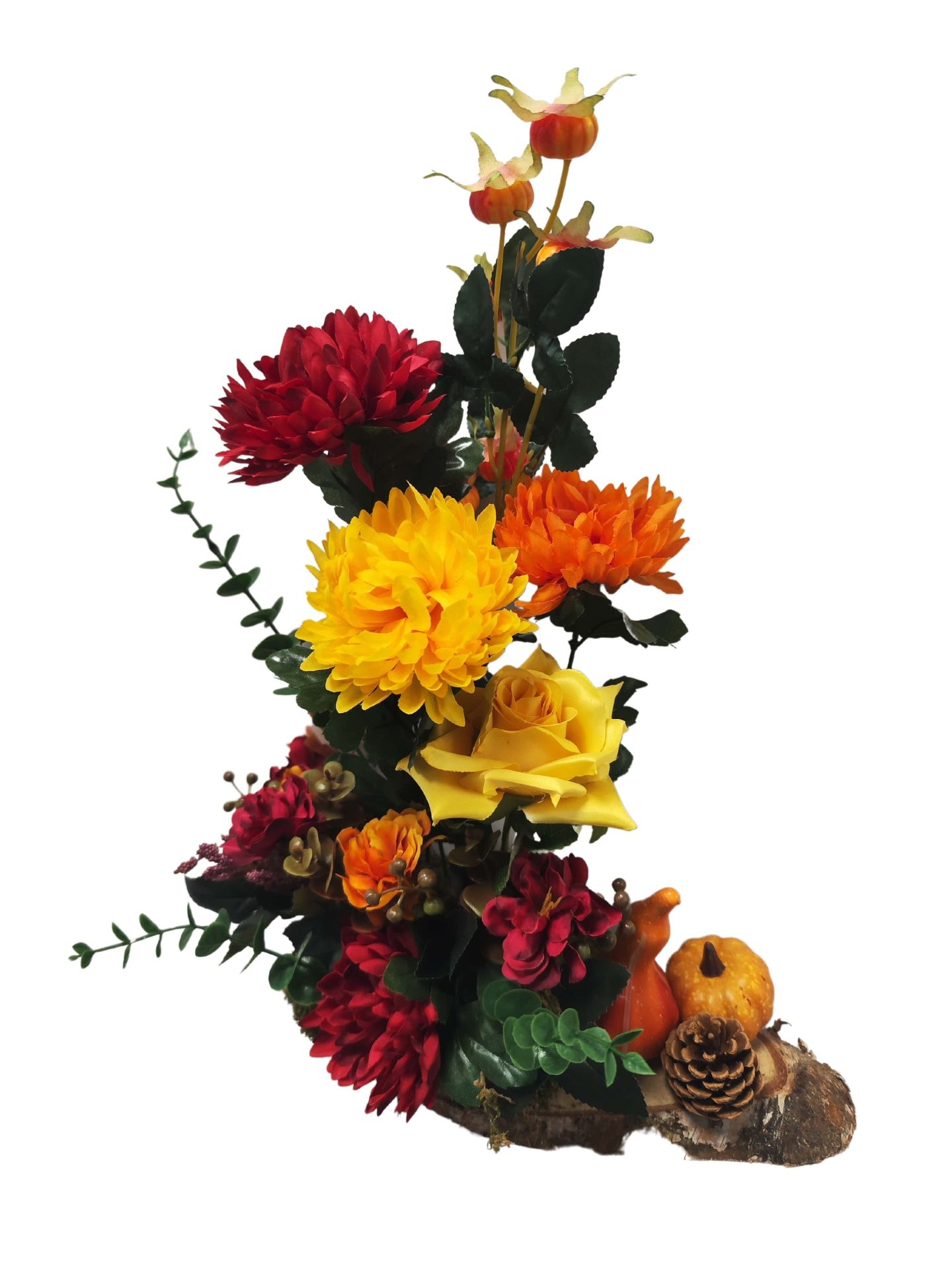 Plateau de Chrysanthèmes avec fruits automnales