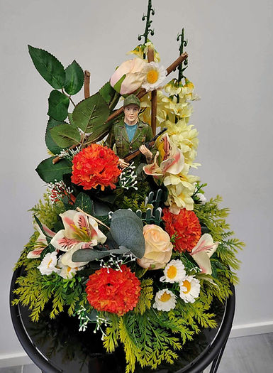 Plateau de fleurs oranges avec chasseur