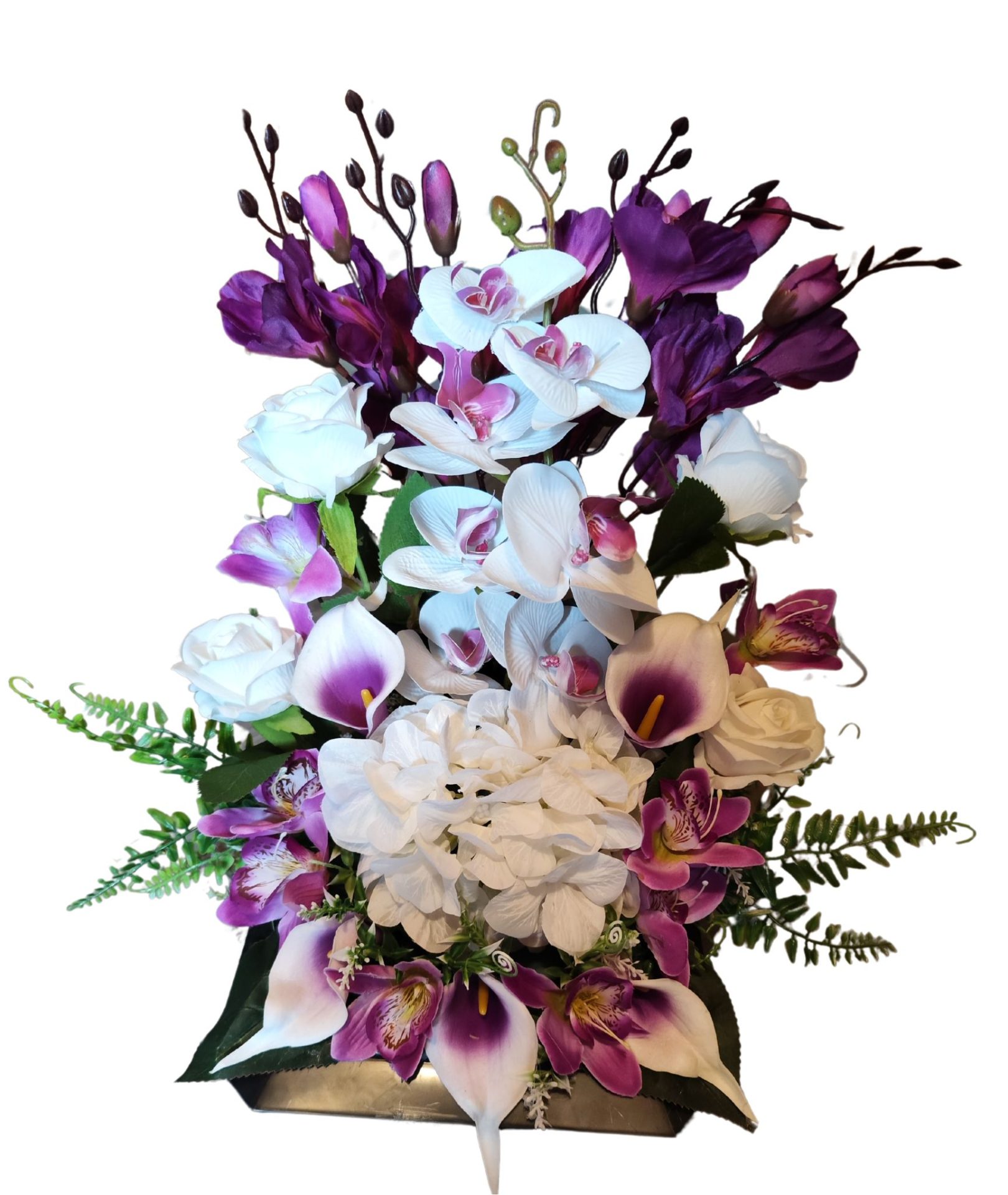 Plateau de Magnolias fuchsias et de fleurs blanches
