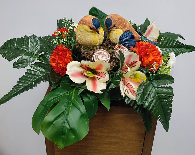 Plateau de Roses avec deux oiseaux
