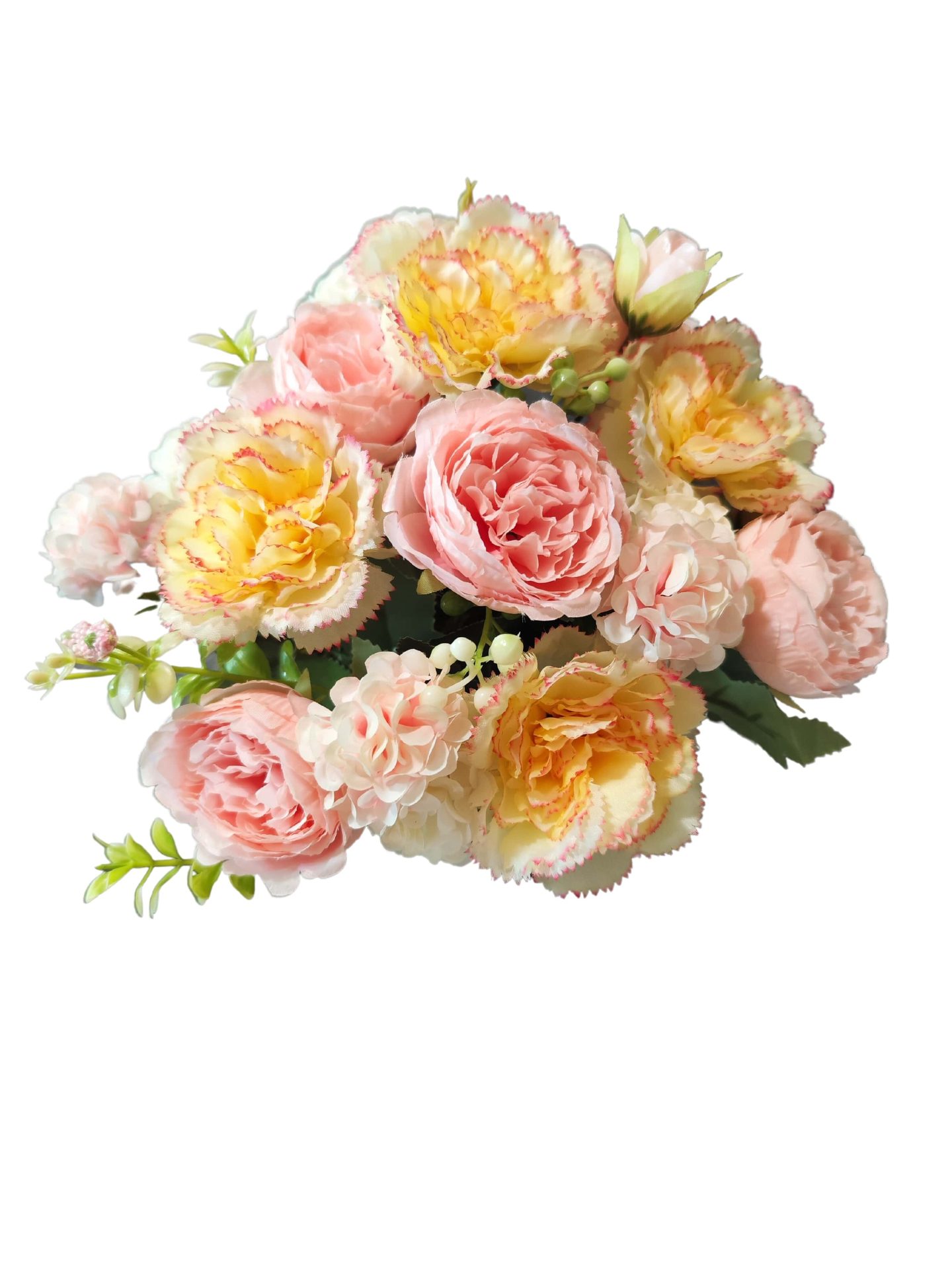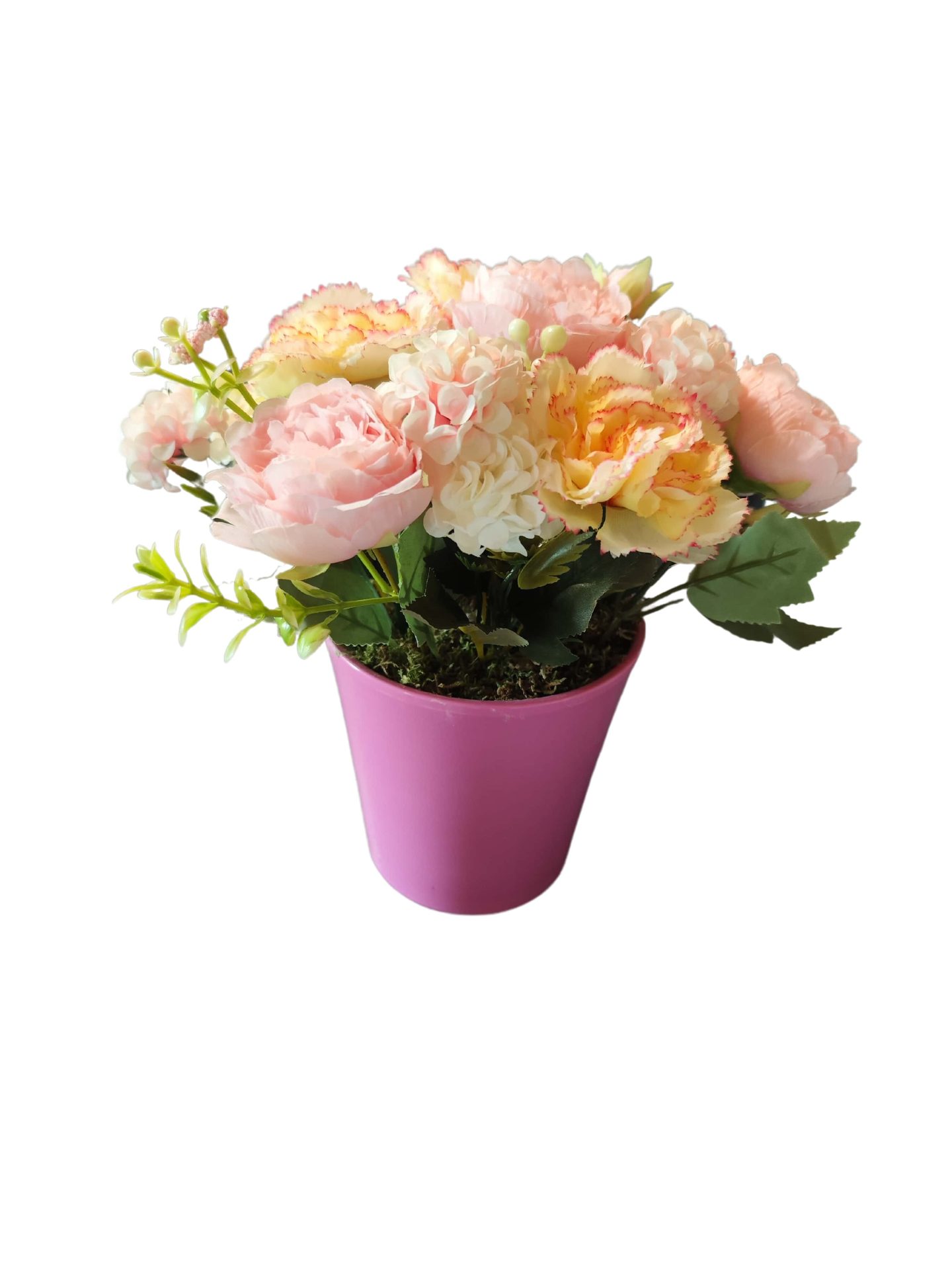 Pot d’Oeillets crèmes et de Pivoines roses