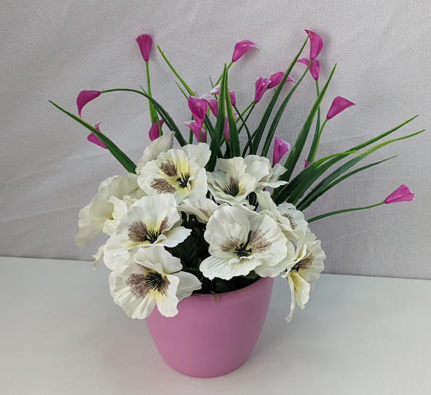 Pot rose de Pensées blanches